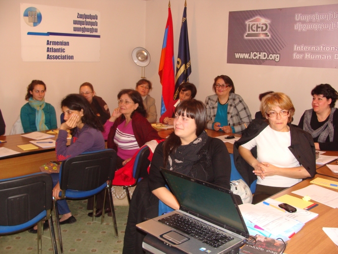 Over 250 professional staff of national machinery institutions and supporting bodies on gender-based violence in all regions of Armenia participated in training courses organized by ICHD in the framework of the UNFPA supported Combating Gender-Based Violence in Armenia project by mid-October 2010. Gender focal points in regional administrations and local self-governance bodies (LSGs), staff of women’s rights units and Public Advisory Committees on GBV in regional administrations participated in the training. The training was a part of the efforts by the ICHD led Consortium of local NGOs, particularly aiming at building the capacity at both national and local levels for protecting and enforcing the rights of women and building reporting mechanisms. The Ministry of Labour and Social Affairs of the Republic of Armenia, as well as the offices of regional governors have supported the training through mobilizing the focal points and their partners both in regional and municipal administrations.