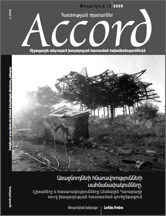 ՄԶՄԿ օժանդակությամբ հրատարակված բրիտանական «Հաշտության պաշարներ» միջազգային ոչ կառավարական կազմակերպության ԱԿՈՐԴ հանդեսի հաջողված համարներից մեկի հայերեն թարգմանությունը, իրենից ներկայացնում է միջազգային անդրադարձ խաղաղության հաստատման նախաձեռնություններին: Հանդեսի այս համարը, որն անվանվել է «Առաջնորդների հնարավորությունների սահմանափակումները. էլիտաները և հասարակությունները Լեռնային Ղարաբաղի շուրջ խաղաղության հաստատման գործընթացում» ընթերցողին է ներկայացնում շահերի տարբեր խմբերի մոտեցումները, խաղաղաղության հաստատման գործընթացի հեռանկարներն ու հակամարտության հետևանքների վերլուծությունները: