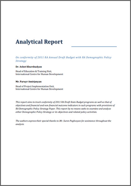 On Conformity of 2011 RA Annual Draft Budget with RA Demographic Policy